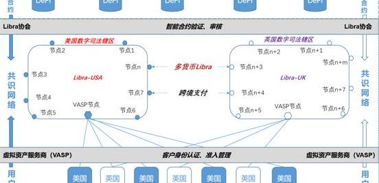 6.跨國資本流動管理。Libra的技術特性模糊了“離岸”與“在岸”的邊界,容易對跨境資本流動管理框架形成沖擊。筆者曾建議“各國監管部門根據客戶的數字身份歸集本國居民,劃定數字司法轄區。本國居民與非本國居民的金融業務和資金往來,由各國監管部門按照各自的資本賬戶開放和跨國金融監管政策進行規制。本國居民之間的金融業務服從各國的KYC、AML/ATF及各類金融監管規則。由此,政府就不用擔心跨境宏觀審慎管理和金融監管的失效”。Libra2.0白皮書將單貨幣Libra用于國內交易,而多貨幣Libra僅用于跨境交易,且多貨幣Libra是由單貨幣Libra抵押通過智能合約組合生成。這其實劃出了在岸與離岸的邊界。雖然它沒有給出具體如何操作,但結合其對錢包地址的管控,如分類管理、盡職調查、阻止制裁地址交易,可推測其思路或與筆者建議大邏輯一致,即通過錢包地址和數字身份歸集本國居民,劃定數字司法轄區,開展跨國資本流動管理。見下圖。