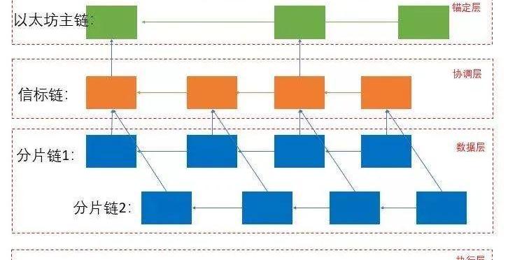 而在ETH2.0中,網絡呈現出雙層結構。底層結構中,通過分片技術,對等待處理的任務,比如交易驗證、DApp運行等進行分解,對“礦工”進行分組,不同的“礦工組”處理不同類型的任務,不同的“礦工組”并行處理任務,以此來提升網絡速度。