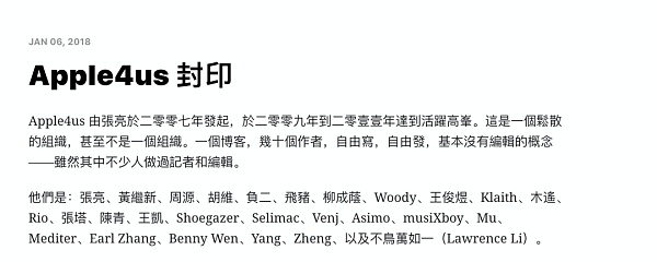 不過,Apple4us?早已不再更新,網站最新更新內容停留在 2018 年 1 月,由網站最后一個維護者李如一封印永存為「21 世紀初中文科技史」。