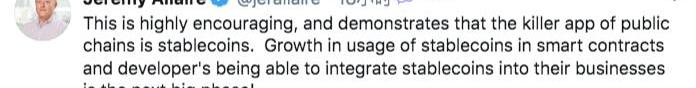CircleCEOJeremyAllaire認為這是好跡象,公鏈的殺手級應用是穩定幣: