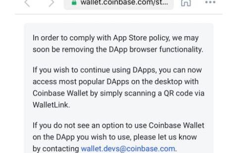 蘋果公司的應用程序商店政策引發了coindesk的擔憂,為了他們的應用程序不被蘋果應用商店下架,Coindesk發表了一份聲明,表示將禁用其dApp的瀏覽器功能。