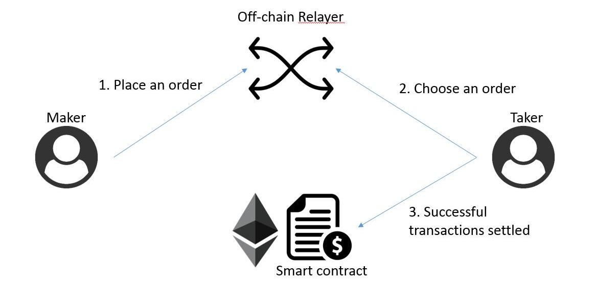 為了解決純鏈上效率低下,且手續費低廉的問題,0x協議引入了relayer(中繼)的概念,所有訂單都發給relayer,無需上鏈,只有成交才會上鏈。