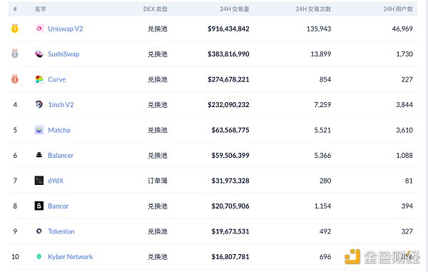 交易量排名前十的DEX 數據來源:Debank
