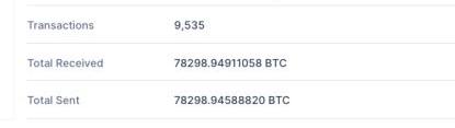 威廉幣圈圈特意查看了作者都比特幣地址,目前還剩下0.00322238個比特幣,總共9535次轉賬,接受和發出基本都是78298個比特幣。