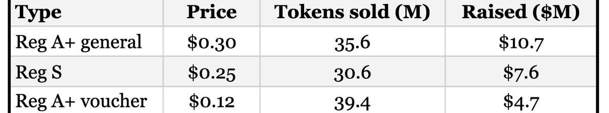 2016年底A輪投資者共計投資510萬美元,以低于0.05美元的價格購入代幣。RegD的投資者則可以以每個0.12美元的價格購買代幣。
