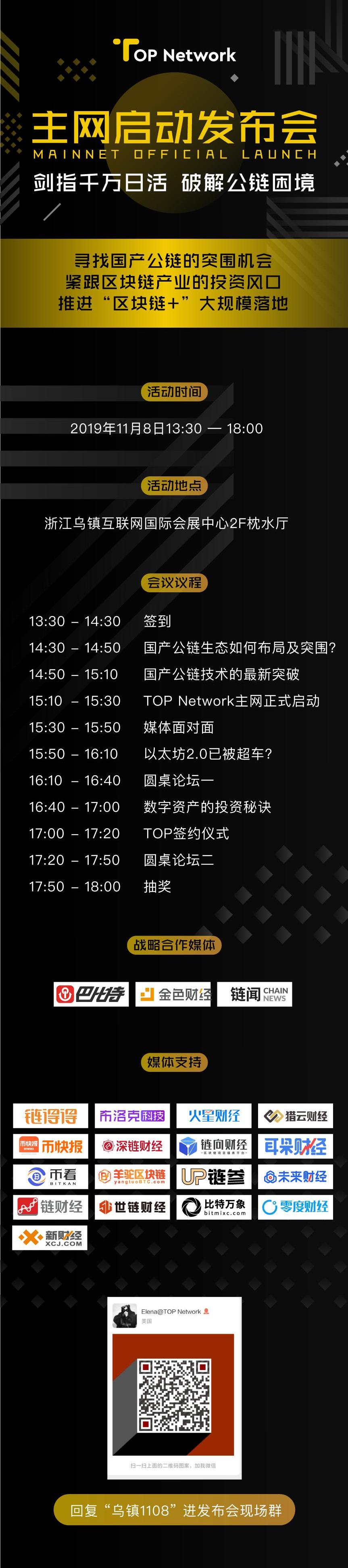 XRP/HKD-0.37%經過近兩年時間的開發,TOPNetwork主網實現了技術上的重大突破,成為全球首條全狀態分片公鏈,并將于11月8日在烏鎮“第二屆世界區塊鏈大會”現場正式發布。屆時,TOPNetwork創始團隊將和現場幾百位同行分享TOP主網技術上的創新和突破,十幾位行業大咖和重量級投資人將圍繞“區塊鏈+”落地、區塊鏈投資風口以及國產公鏈的機會等話題進行深入探討。