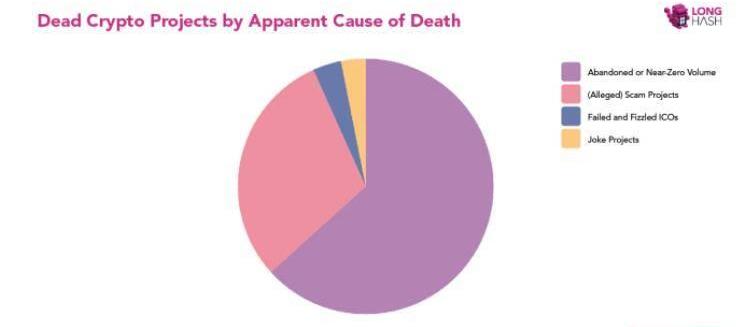 有多少死掉的加密貨幣項目?