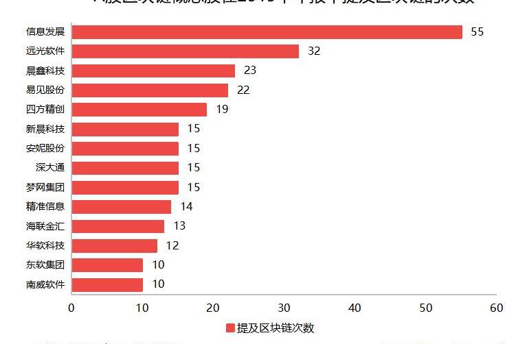 巴比特整理發現,提及區塊鏈次數在10次以上的上市公司只有14家,按照提及次數遞減的順次依次排列是:信息發展、遠光軟件、晨鑫科技、易見股份、四方精創、新晨科技、深大通、夢網集團、安妮股份、精準信息、海聯金匯、華軟科技、南威軟件和東軟集團。