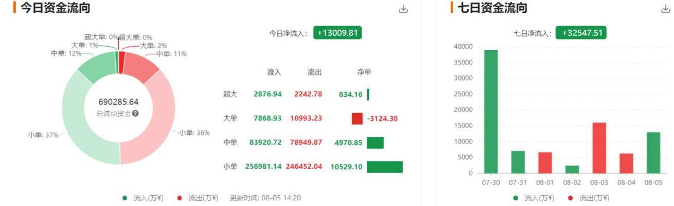 截至14時,BTC的今日資金凈流入328801.31萬元,較昨日有所增加。其中,超大單凈流入45581.41萬元,大單凈流入102662.2萬元,中單凈流入126475.7萬元,小單凈流入54082.00萬元。市場建倉量不減,以大單和中單居多。