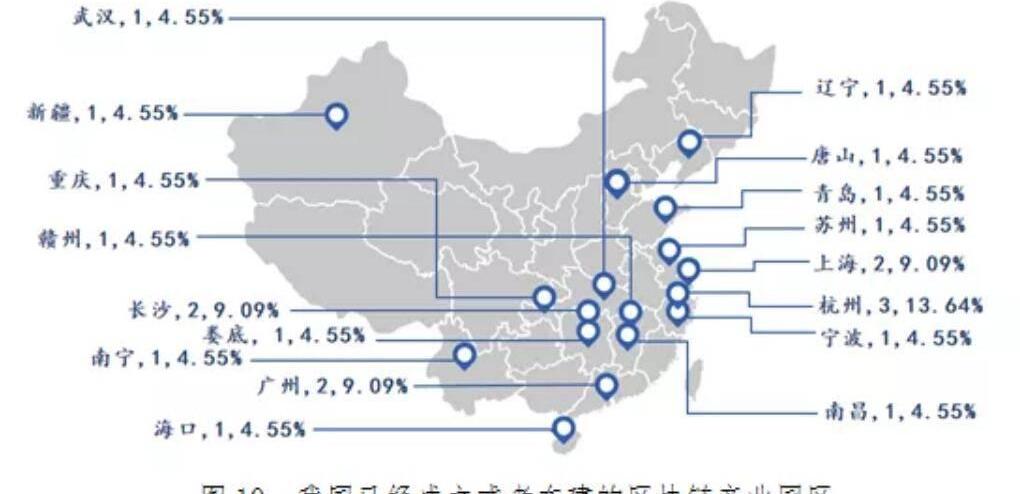 四是聚集要素逐漸積累,產業園區不斷壯大。截至到2019年上半年,全國已經成立或者在建的區塊鏈產業園區已經覆蓋上海、杭州、寧波、廣州、青島、重慶、武漢、長沙、南昌、海口、贛州、婁底、遼寧、南寧、唐山、新疆等全國五大地區,區塊鏈產業園數量已達20余個。
