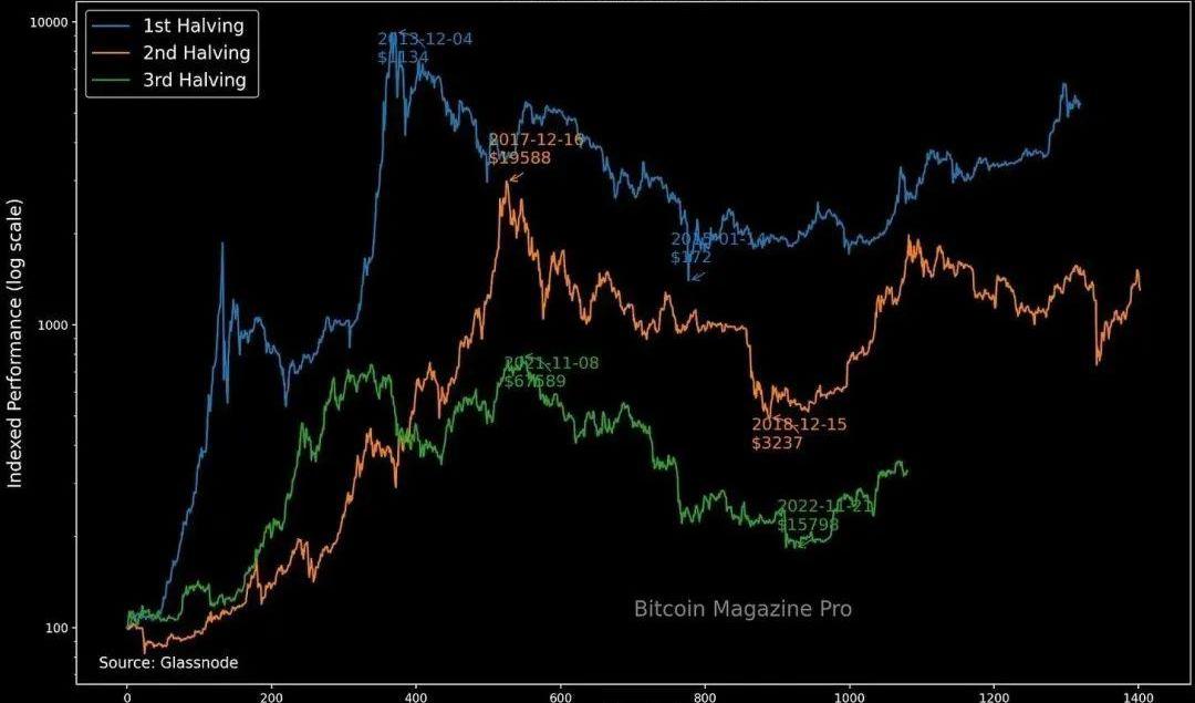 過去的十幾年,大餅價格在每次減半后都大幅上漲,盡管都是發生在減半結束后的好幾個月。每一個減半周期,都會有關于減半預期是否已經體現在價格上的爭論--畢竟減半是一個眾所周知的事情。