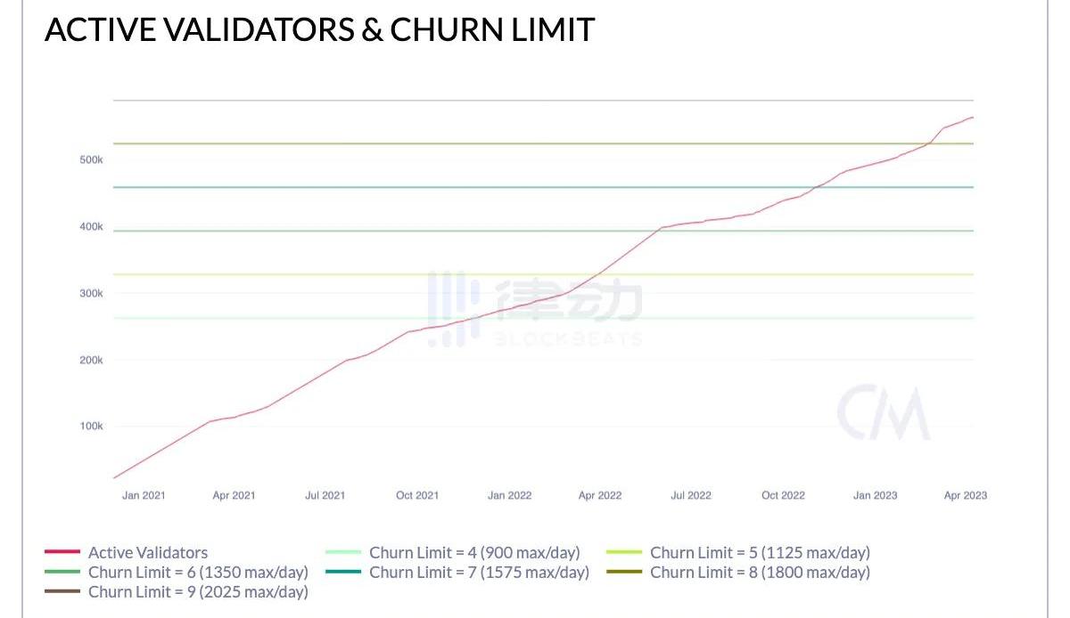 提款受到速率限制,并使用隊列限制提款數量,類似于用于限制新驗證者加入網絡的隊列。隊列容納了部分提款的固定速率,每個時代512個,其中允許根據活躍驗證者數量進行更少量的全部提款。每個時代的全額提款數量由一個名為「流失限制」的參數決定,該參數還規定了每個時代可以加入驗證者集合的新驗證者數量。在當前活躍驗證者水平下,每個時代可以退出8個驗證者,時代持續時間為6.4分鐘。因此,在當前水平下,每天最多可以有1,800個驗證者進行全額提款。這意味著在活躍驗證者總數發生大幅波動之前需要很長時間。一旦發起全額提款,用戶將不再被視為信標鏈上的驗證者。