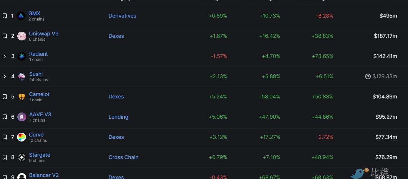 對于那些相信Arbitrum生態系統并希望多樣化其投資組合的人來說,另一種策略是出售ARB并從基于Arbitrum的DeFi協議購買代幣。其中一些DeFi協議包括去中心化永久交易所GMX、期權平臺JonesDAO、元治理中心Plutus、去中心化交易所Camelot和游戲生態系統Treasure?DAO。這些協議可能會收到分配給Arbitrum應用程序的1%代幣中的一部分,從而增加他們的儲備價值,從而增加代幣價值。此外,這些協議可以使用他們的ARB分配來激勵用戶使用他們的平臺,通過提供ARB獎勵來進行質押或提供流動性。考慮此策略的另一個原因是,代幣發行將使Arbitrum的絕對價值增加:TVL將立即增加10億美元,并隨著更多代幣被發放而逐漸增加。
