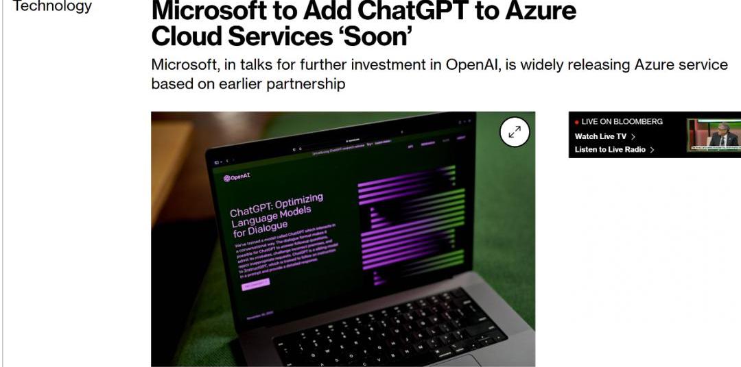 早在今年年初,微軟就提出會把ChatGPT加入Azure云服務,而微軟的AzureOpenAI是2021年推出的,此項服務,令微軟云服務客戶可以使用各種OpenAI工具,如ChatGPT基于的GPT-3.5語言系統,以及可以通過文本提示生成圖像的Dall-E模型。