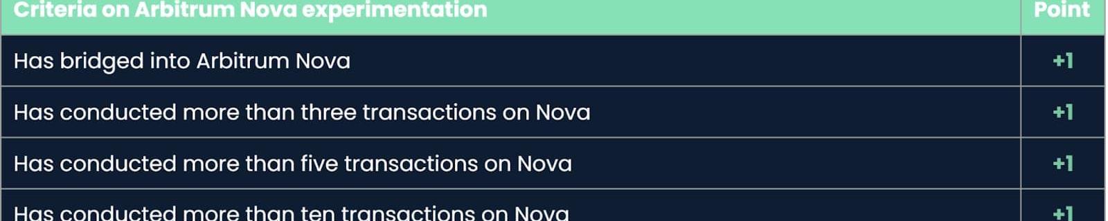 ?橋接到ArbitrumOne和ArbitrumNova的錢包地址,需要在兩個不同的月份內通過ArbitrumOne至少進行25筆交易,在ArbitrumNova上,錢包需要十多筆以上交易