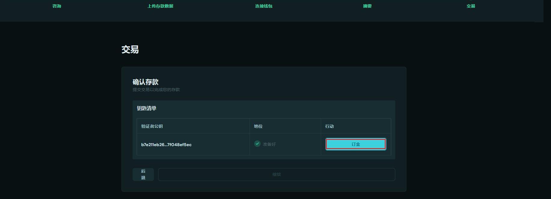 隨著DKG儀式的結束,激活前的最后一個階段是準備您的節點以進行長期驗證,把之前生成的deposit-data.json文件上傳即可。
