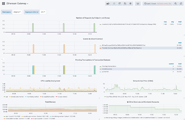 以太坊的后端監控。監控器演示的活動主要與我們的循環計費功能有關(盡管您可以看到每小時都有峰值)。