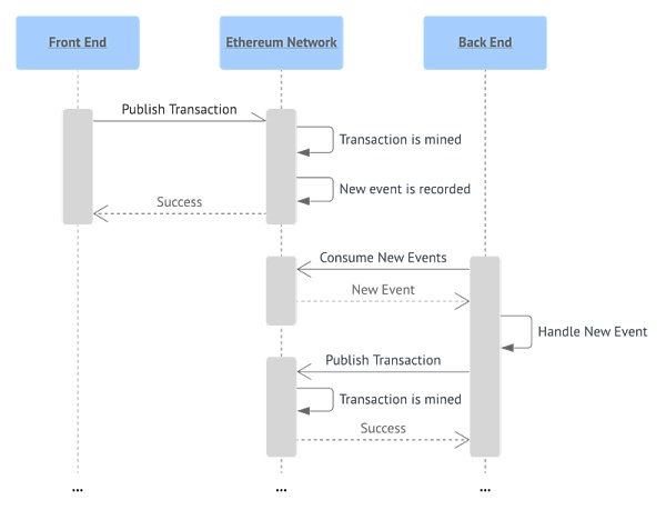 一旦挖掘到收費交易,負責特定任務的后端服務就會從以太坊網絡接收事件,并執行一些邏輯(包括設置下一個收費日期)。