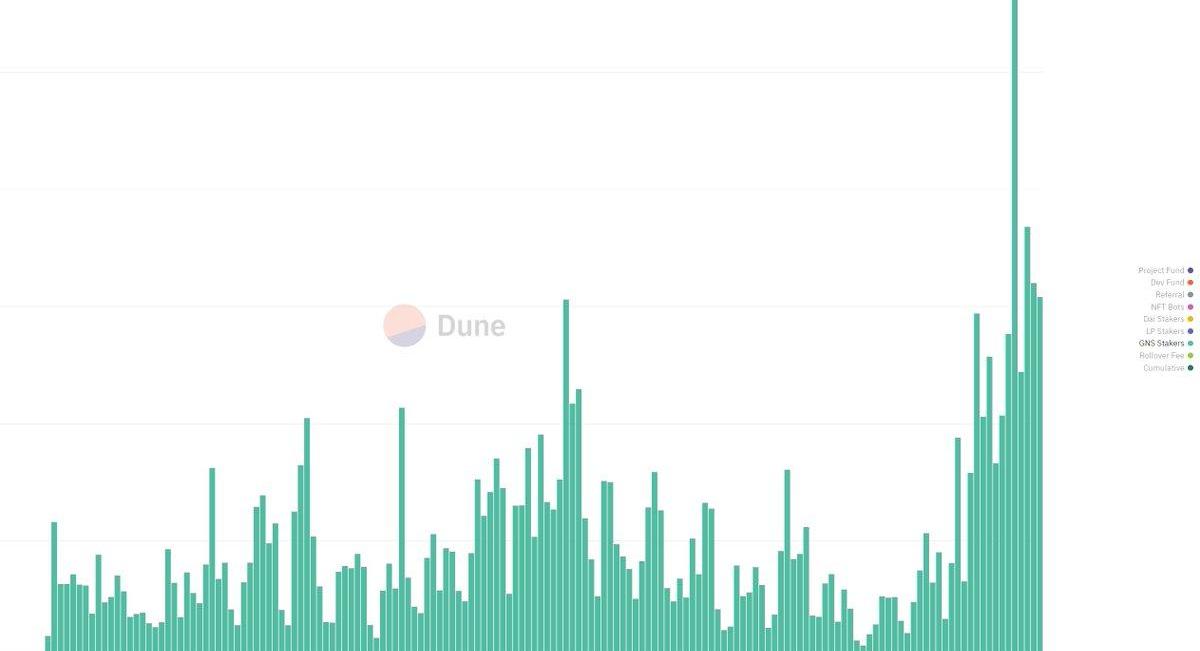 沒錯,$GMX質押者的收入大約是$GNS質押者的10到20倍。