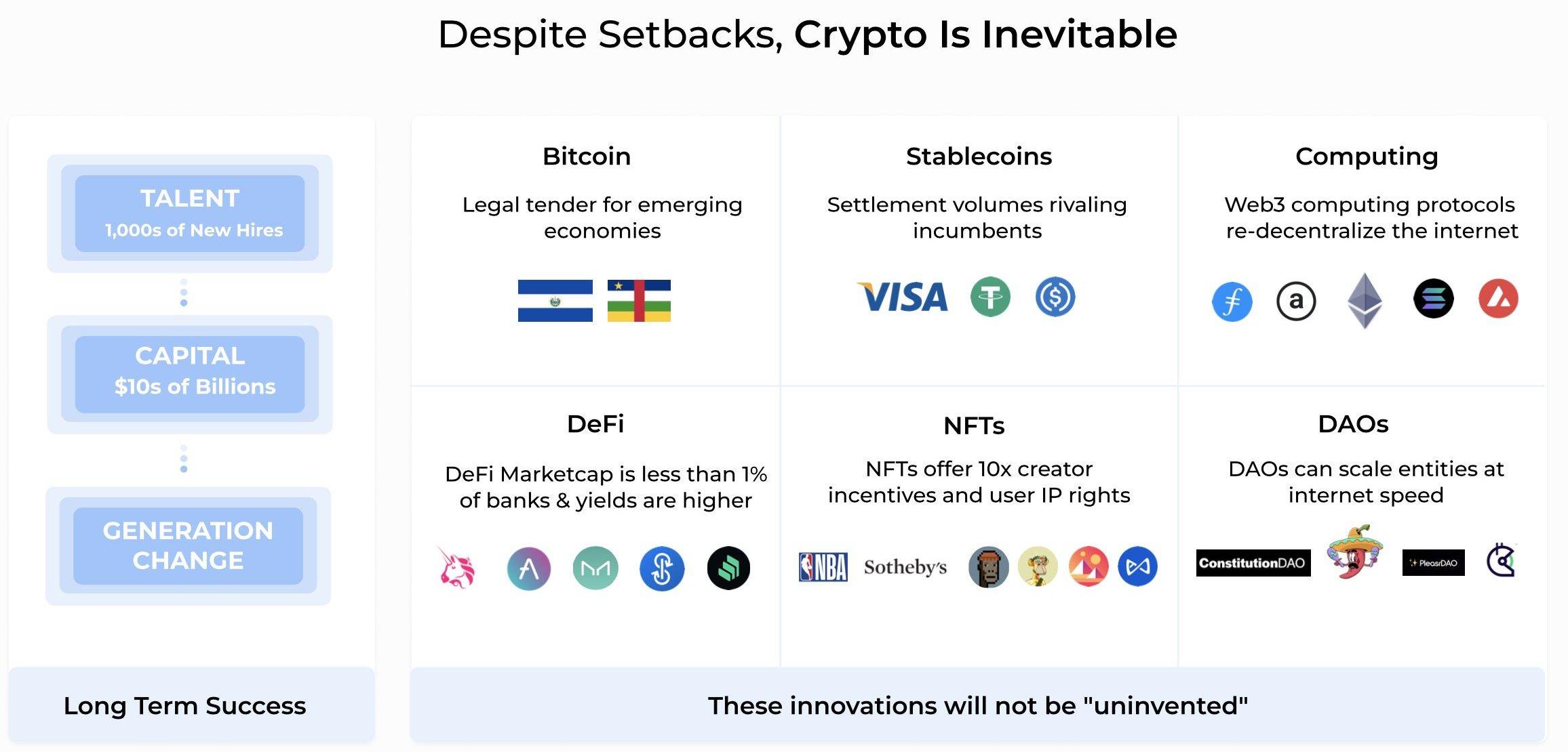 加密是不可阻擋的,因為盡管有挫折,但我們在比特幣、穩定幣、分布式計算、可擴展性、鏈上金融原語和治理方面取得了重大進展。