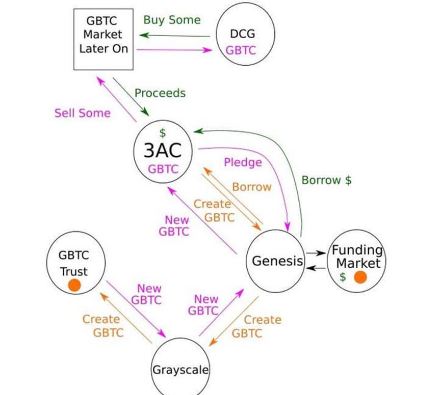 DCG杠桿做多GBTC。3AC爆炸了。這種減記減少了GenesisLending的股本。