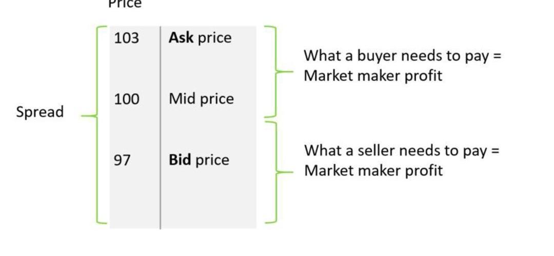 買入這個資產需要103,賣出這個資產獲得97,做市商獲得的點差為6