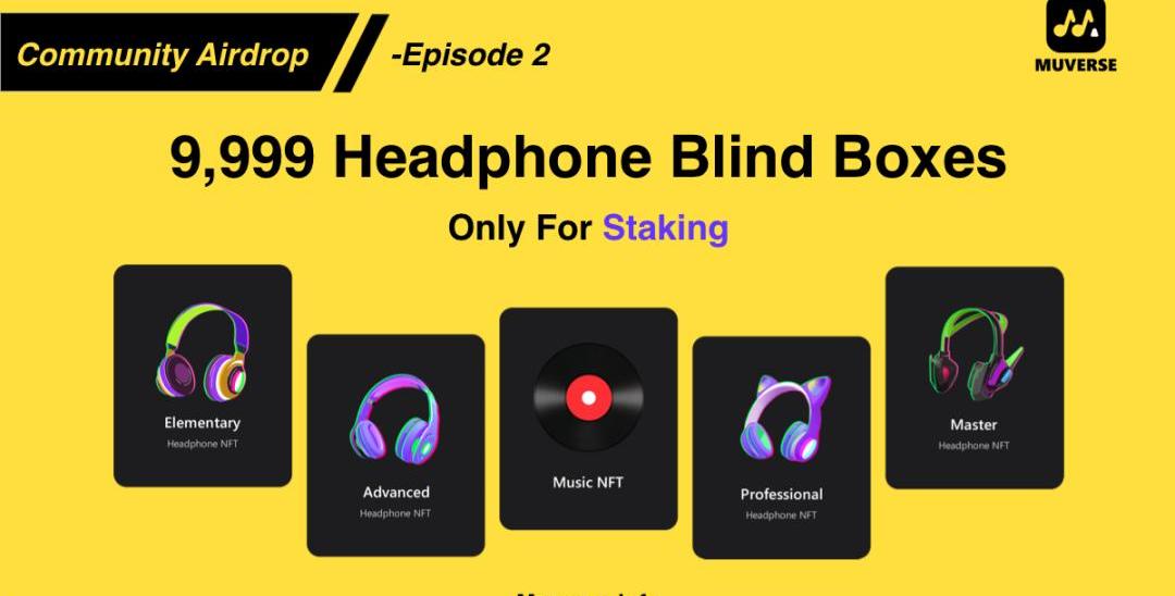 Muverse社區創世耳機空投,暨MuverseApp社區公測上線已于北京時間2022年11月29日晚21:00開啟。9999個創世耳機盲盒將空投給按照規則在Muverse官方平臺參與質押的用戶。