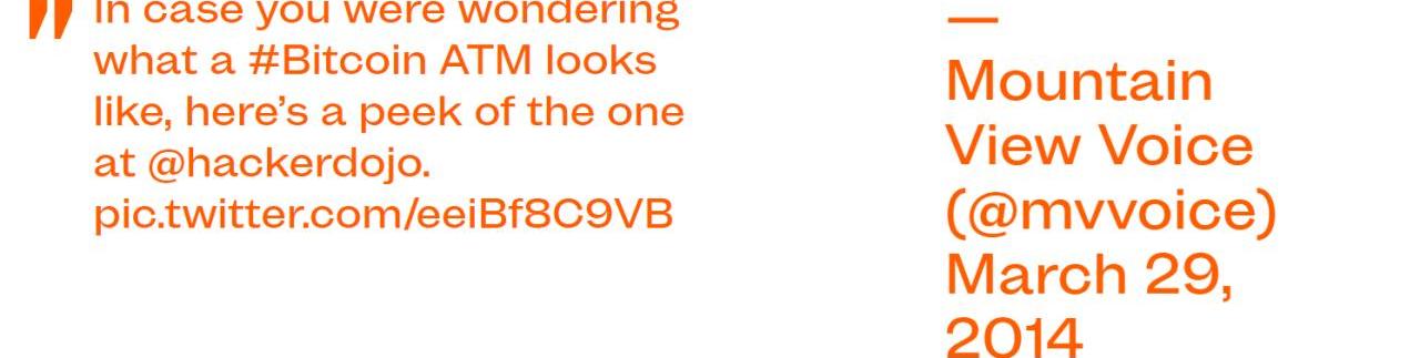 如果你想知道比特幣ATM機是什么樣子的,這里是@hackerdojo的一個偷窺,pic.twitter.com/eeiBf8C9VB?-MountainView之聲2014年3月29日