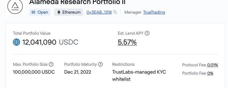 下面是由?OrthoCredit和?M11?Credit?管理的?Maplepools,盡管Alameda在過去有超過1億美元的貸款,但沒有未償還貸款。