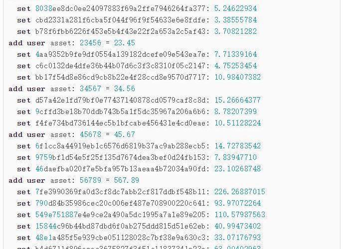 6f1cc8a44919eb1c6576d6819b37ac9ab288ecb59759bf1d54e5f25f135d7674dea3bef0d24fb15346daefba020f7e5bfa957b13aeaa4b72034a90fd這樣我們就可以把這個用戶的余額分別存放在3個子節點上。把所有用戶都處理一遍,假設結果如下: