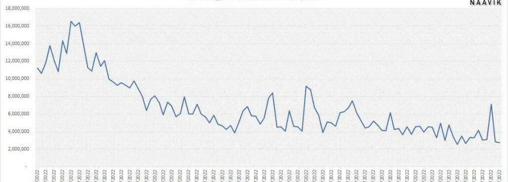 由于游戲出現了免費和付費兩個版本,我們假設玩家們可能會在搜索的時候將其混淆,但即便是這樣,結論也還是一樣的:新游戲的用戶量增長遠不足以彌補老游戲用戶量的下滑。考慮到《AxieInfinityOrigin》仍處于早期階段,后續可能會發生變化,但目前這個數據依然是需要警醒的。