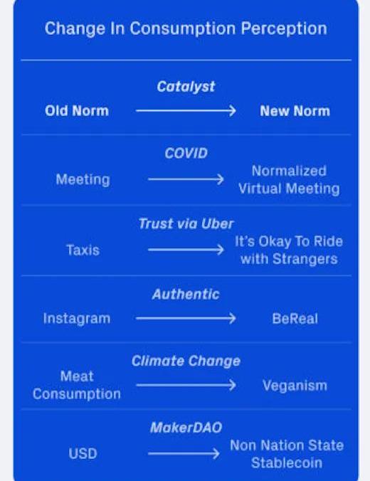 在整個21世紀,新的消費者行為的主要催化劑是新的技術帶來的社交體驗:互聯網、移動電話、社交網絡和區塊鏈。