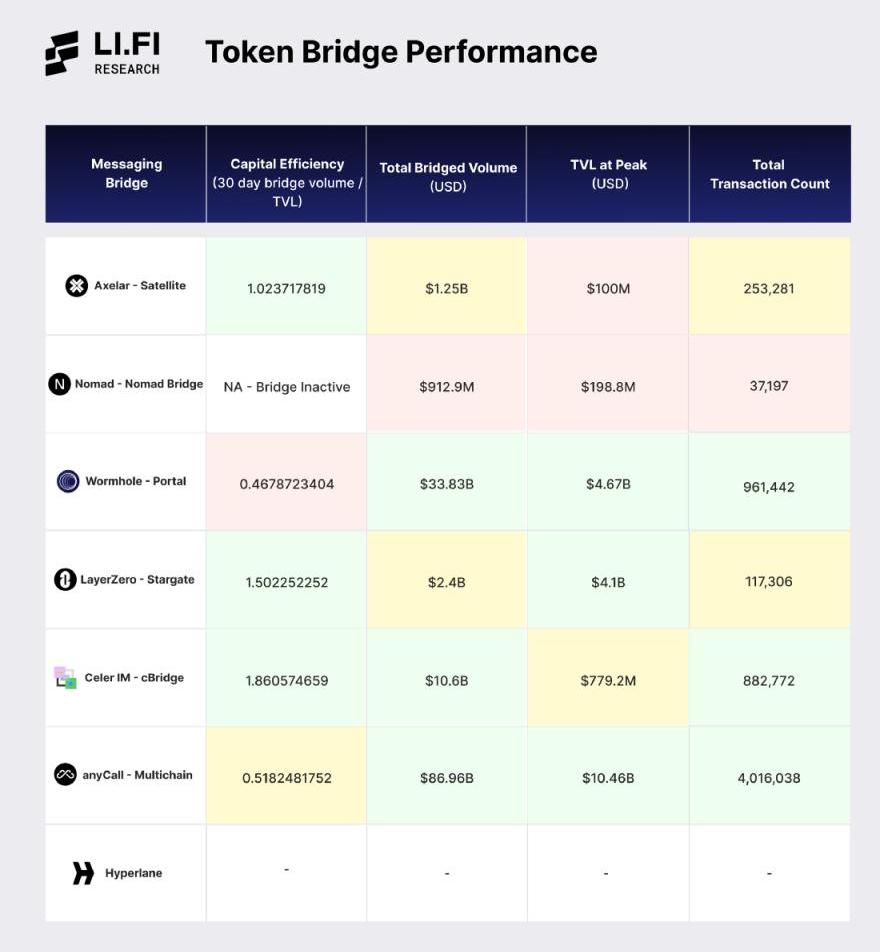 本文將探討七種數據消息傳遞橋的設計、安全性和信任假設:LayerZero、Wormhole、Nomad、CelerInter-chainMessage(IM)、Multichain的anyCall、Hyperlane和Axelar。從那里,我們將使用LI.FI評估矩陣比較七座橋梁。