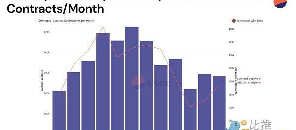 解讀:在開發層面上,每月30萬個智能合約可能還包括重復造輪子和仿盤等行為。筆者建議更多的看代碼質量和認可度數據。