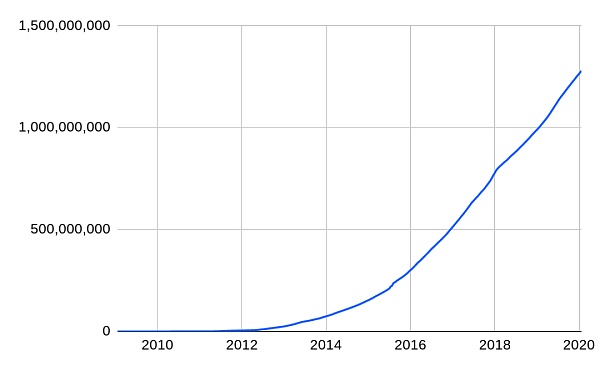 下圖(圖 3 和圖 4 )說明了BTC輸出總數的增長以及其隨著時間的推移如果發展。在BTC的歷史中,已有近 13 億個交易輸出。當然,這些輸出中只有一小部分仍未支出(有時稱為 UTXO )。目前, UTXO 集超過 65,00 萬,占累計總輸出數量的 5.1% 。
