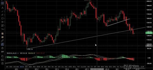 以太坊昨日波動也挺大,在加息落地那一刻行情立馬下跌且延續空頭走勢,低位跌至1219一線,恭喜跟上空單的幣友獲利160美刀,多單可惜沒到進場點位,四小時級別布林帶開口下移行情跌至下軌支撐反彈,k線連陰后以陽k收線,短期雖然止跌但需要關注反彈力度及1280壓制情況,macd空頭運行雙線死叉向下,有走出底背離的預期,日線級別整體呈空頭趨勢,行情在布林帶中下軌區間運行,macd空頭逐步放量雙線死叉,大周期依舊空頭占優,日內建議高空為主低多為輔,1280-1320空,目標1250-1200,1200-1160多,目標1320-1420