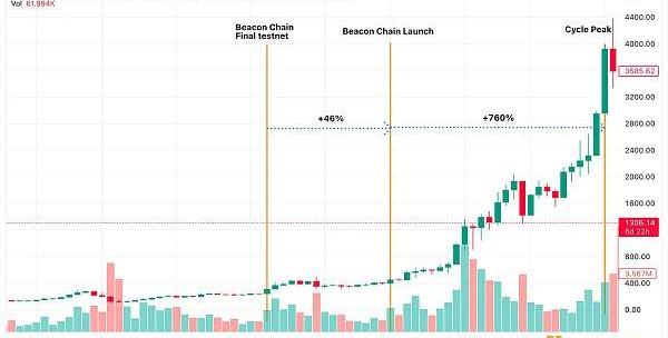 總體而言,從信標鏈啟動到周期峰值的增益為+760%。