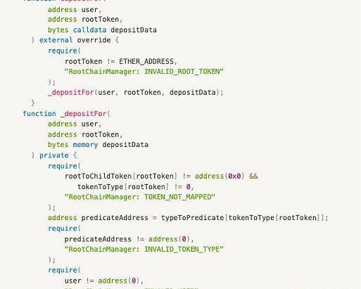 以下是RootChainManager合約中depositFor函數的具體代碼: