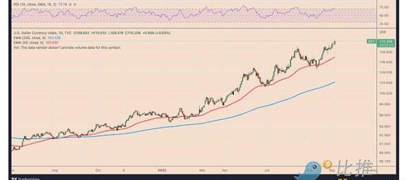 對現金的更廣泛需求幫助衡量美元兌主要外幣強弱的美元指數在9月6日攀升至2002年以來的最高水平110.55。因此,現金在2022年的表現大大優于股票、比特幣、以太坊和其他資產。
