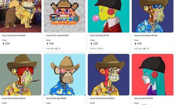 2021年,Gucci推出了名為「SUPERGUCCI」和「10KTFGucciGrail」NFT系列,以及元宇宙商店「GucciVault」系列NFT。