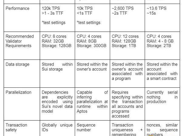 然而,在運行完整的驗證節點時,Sui和Aptos都更接近以太坊,因為進入的門檻較低,這將有助于社區驗證網絡的更大去中心化。