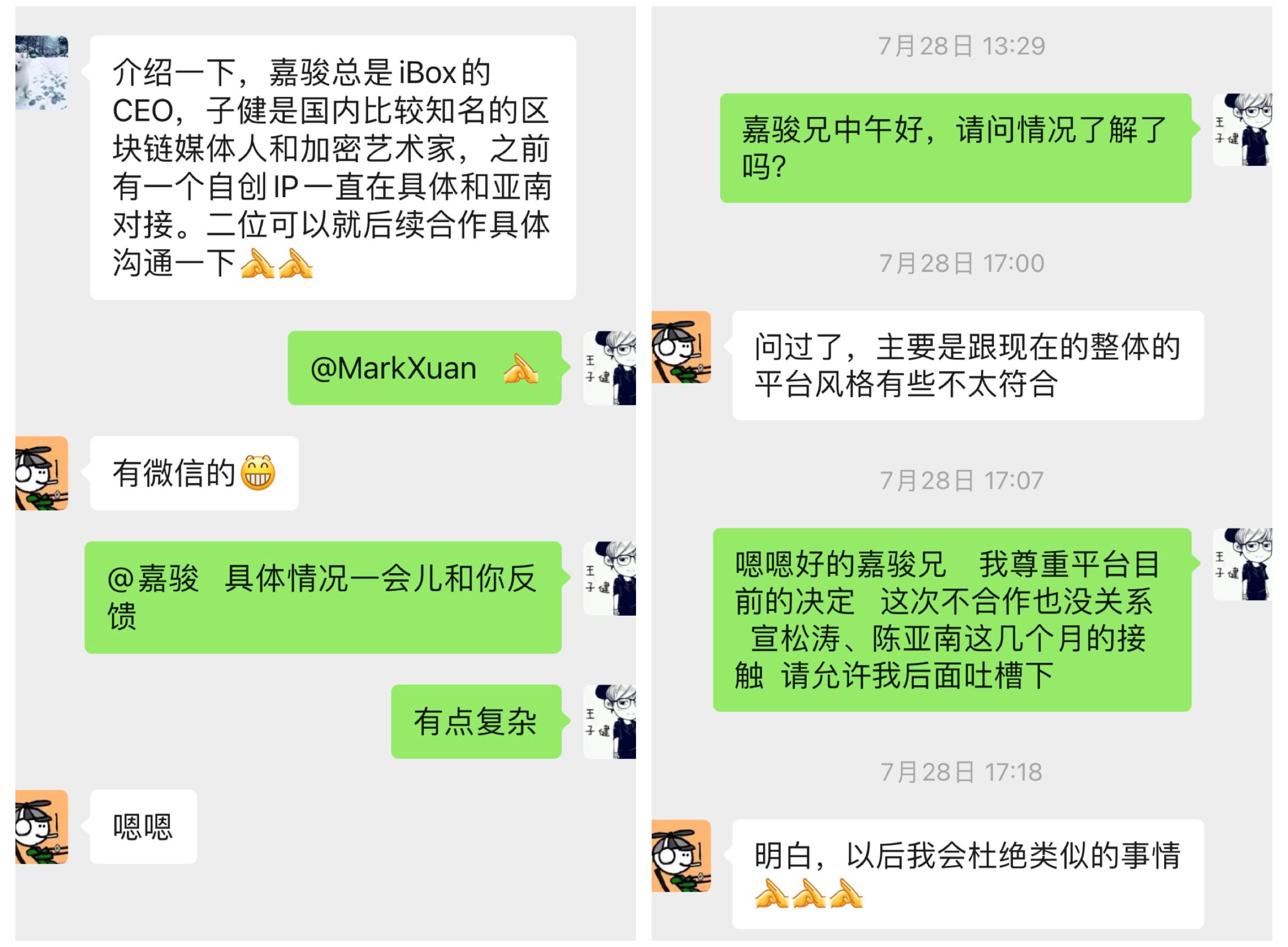 在今年3月24日,ibox大股東唐老板找到了我,讓我幫忙推廣下ibox。那段時間媒體經常采訪我,關于數字藏品和NFT這塊。我也創建了多個高質量社群,唐老板也在我的90后區塊鏈大咖會。所以應該比較看重我這邊的宣發推廣資源。