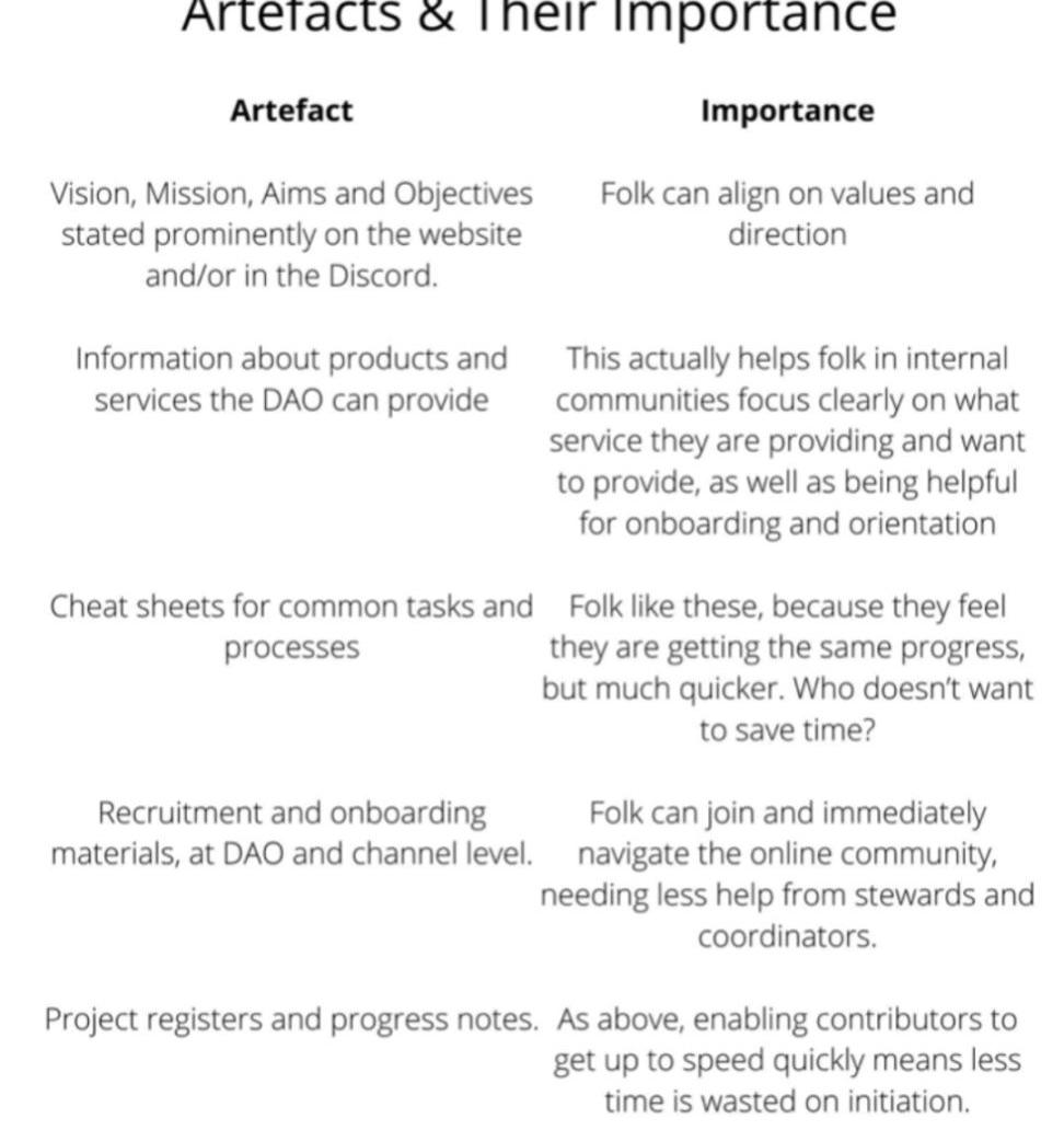 自助學習材料或人工制品的存在可以顯著提高新貢獻者的學習曲線。自學路徑將DAO管家和協調員從高頻接觸工作中解放出來,無論是在會議還是聊天頻道中。