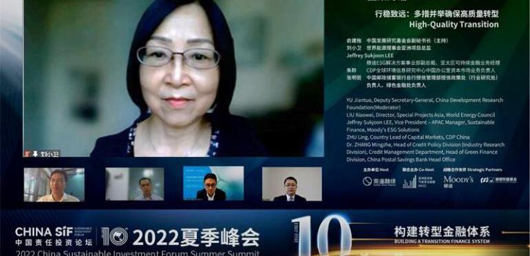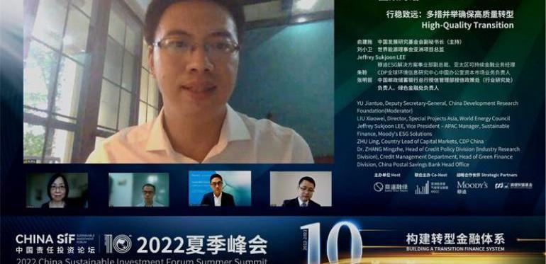夏季峰會第二場圓桌對話主題為“多措并舉確保高質量轉型”。圓桌對話由中國發展研究基金會副秘書長俞建拖主持,世界能源理事會亞洲特別項目負責人劉小衛、穆迪ESG解決方案事業部副總裁與亞太區可持續金融業務經理JefferySukjoonLEE、CDP全球環境信息研究中心中國辦公室資本市場業務負責人朱聆、中國郵政儲蓄銀行授信管理部授信政策處負責人與綠色金融處負責人張明哲作為嘉賓出席,共同探討了可持續金融助力高質量轉型中的挑戰、原因及解決方案。