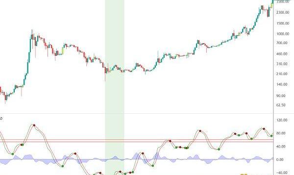 可以看出附圖曲線指數已跌至綠線平衡線下方,2018年熊市底部便是該線跌至平衡線以下見底,2014年熊市底部也是跌至平衡線下方見底,后面該線止跌拐頭重新站上,BTC也探明底部開始區間盤整,蓄勢后展開后面牛市行情,所以BTC后面也是有望在下軌線一帶再次筑底,醞釀后面新一輪牛市行情。